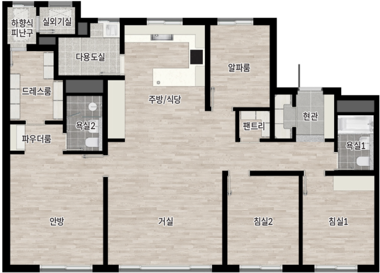 광주중앙공원 롯데캐슬 시그니처는 전용 84㎡부터 펜트하우스에 이르는 다양한 주거 타입을 제공하며 이번 102형 특별분양은 특히 수납공간을 극대화한 4Bay 판상형 구조로 설계되어 생활의 편리함을 더하며 주방의 다용도실, 드레스룸, 알파룸 등 실용적인 공간 설계가 돋보입니다.