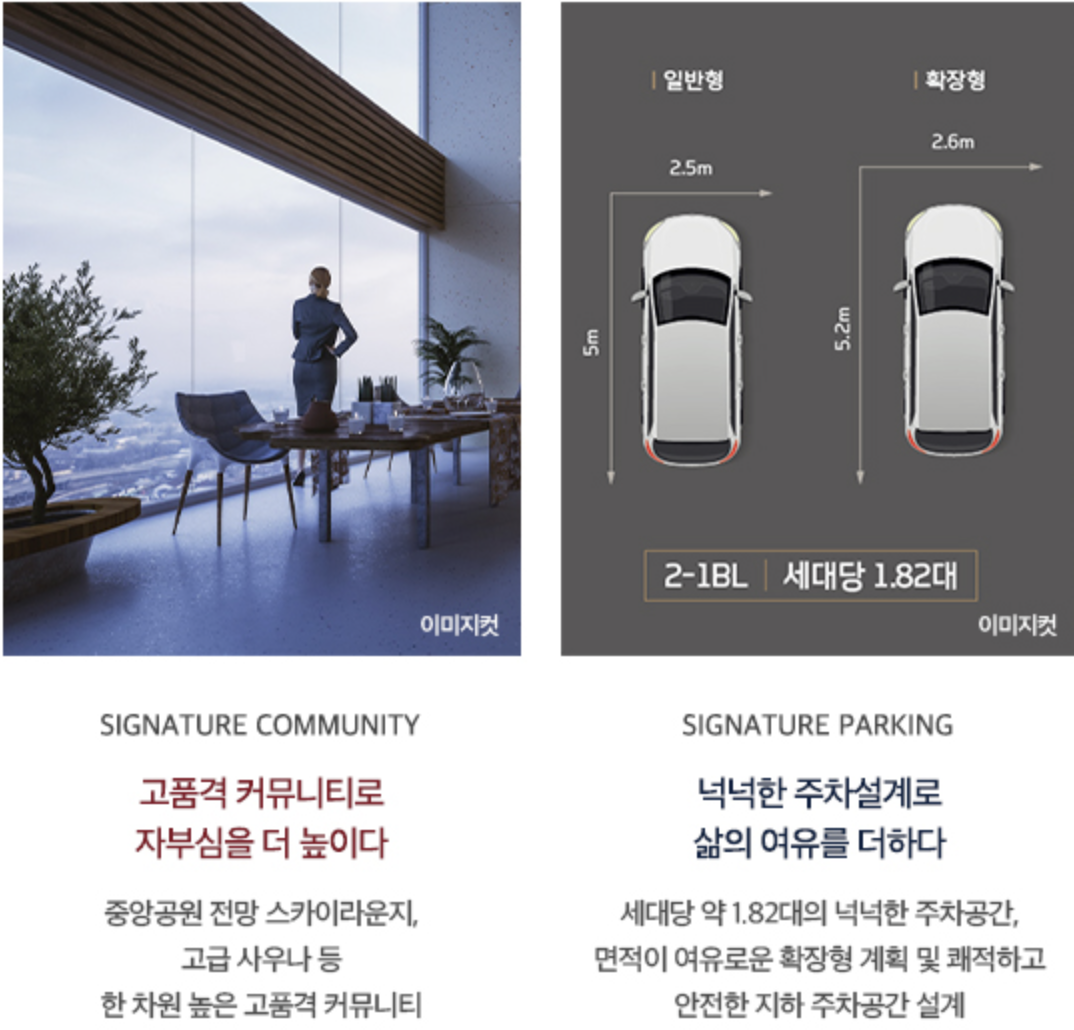 주차 환경도 입주민들에게 중요한 부분인데 중앙공원 롯데캐슬은 가구당 약 2대의 주차 공간을 제공하며 대형 차량을 고려한 확장형 주차 공간도 마련되어 있어 보다 편리하게 이용할 수 있으며 총 5,358대의 주차 공간 중 1,960대가 확장형으로 계획된 점이 돋보입니다.