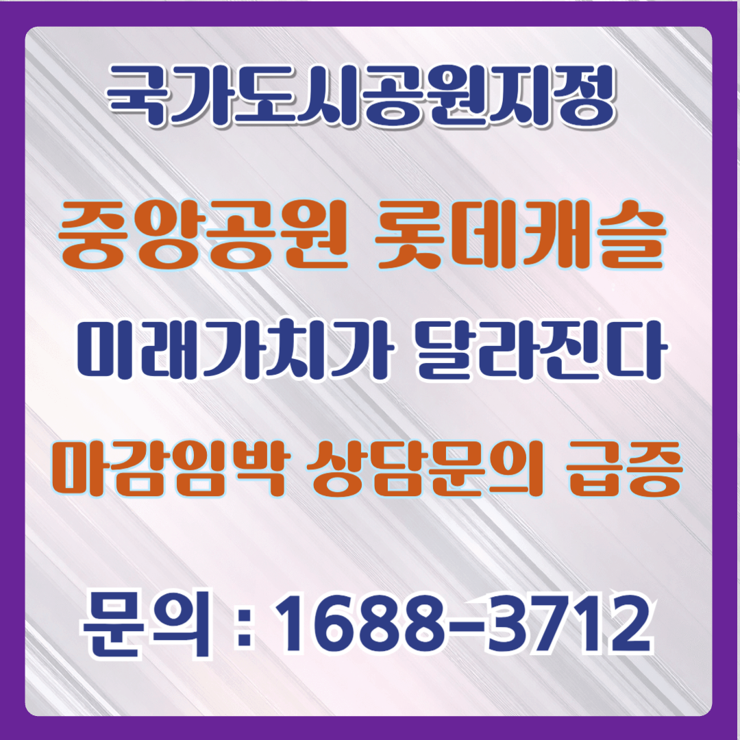 오늘 포스팅에서는 국가 도시공원 지정의 의미 그리고 중앙공원 롯데캐슬에 미치는 시너지 효과를 알아 보겠습니다.