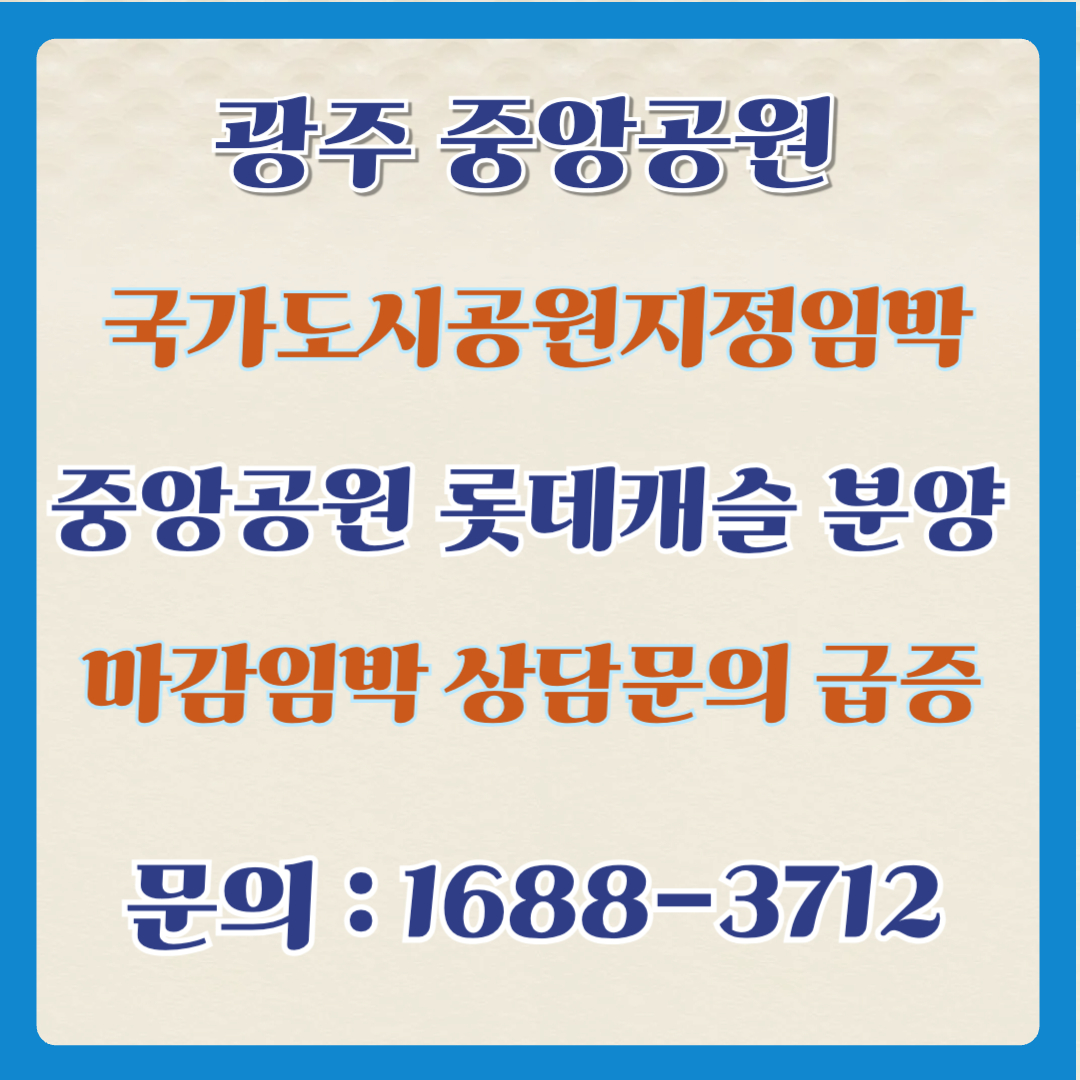 중앙공원 롯데캐슬 시그니처를 비롯한 중앙공원 인근 아파트들은 쾌적한 주거환경과 함께 국가도시공원이라는 프리미엄이 더해져 광주 부동산 시장의 새로운 블루칩으로 부상할 가능성이 높습니다. 또한 국가도시공원 지정 후 공원 관리 수준이 높아지고 다양한 프로그램이 도입됨에 따라 생활 인프라 측면에서도 큰 혜택을 누리게 될 것입니다.